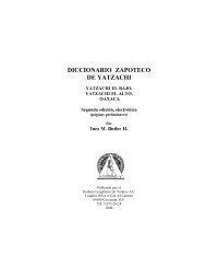 Diccionario Zapoteco de Yatzachi. 978-607-710-179-6 Impreso en Mxico Zapoteco SS CO M7 Libro intindd 2 200612 1250 pm. Grupo tnico que se concentra principalmente en el estado de Oaxaca distribuido en cuatro reas geogrfico-culturales.